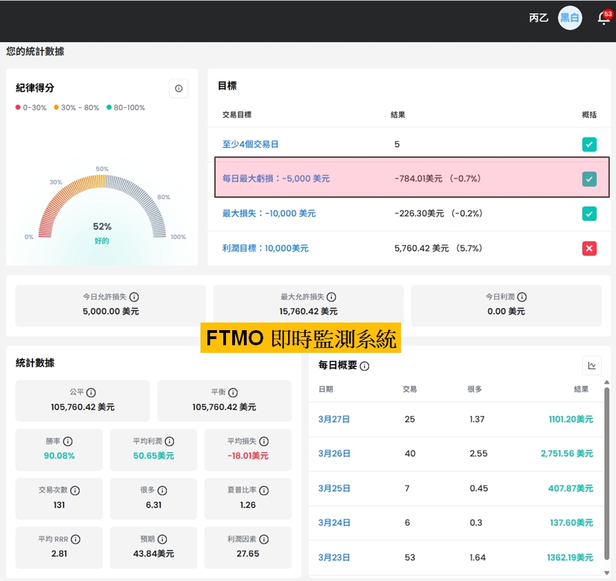 👉 數據來自 FTMO 即時監測系統,無法透過扛單或延後停損美化。