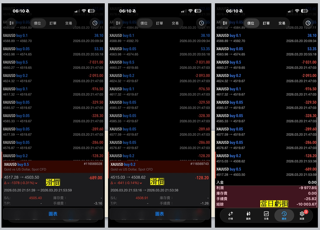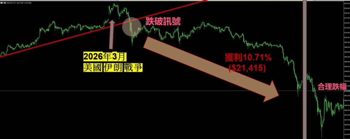 在 3 月中旬,市場已經出現異常:黃金「不漲反跌」,跌破關鍵斜率結構。系統早已給出空頭預警。但我卻做了一件事:用主觀判斷去「修正」系統訊號。